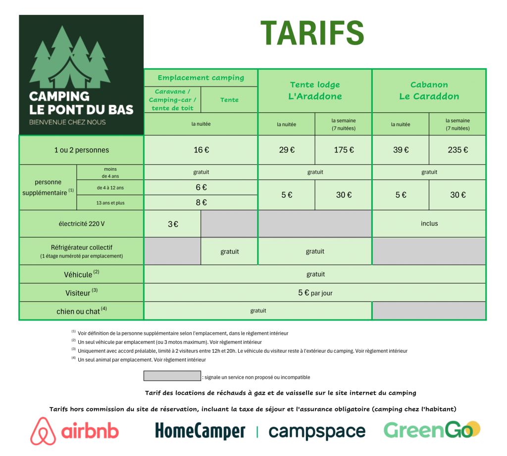 Arrivées à partir de 15h00 – Départs jusque 13h00